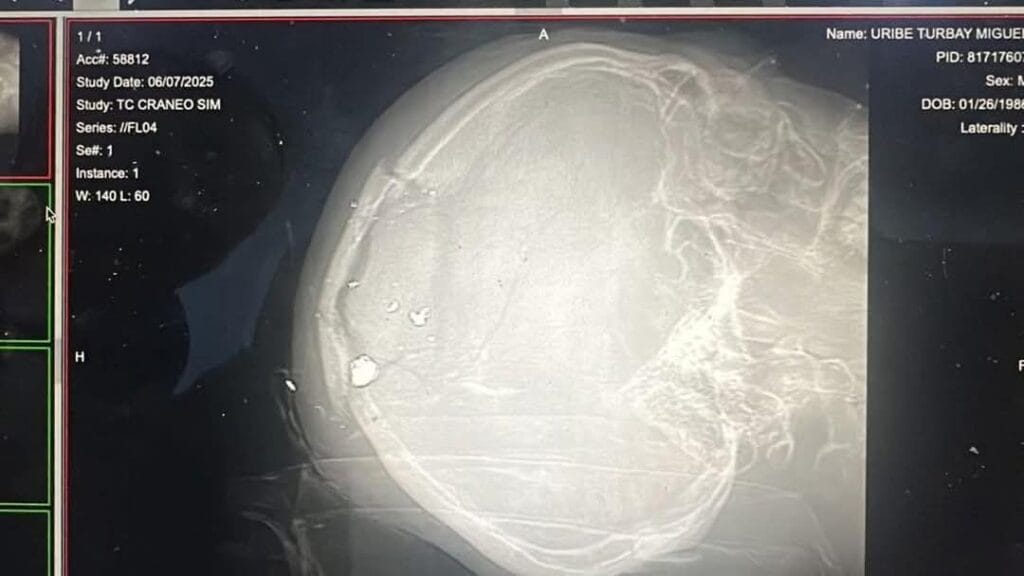 El sicario le disparó a quema ropa por la espalda donde estaba ubicado el asesino connota una corta distancia por lo que ese disparo fue fulminante para acabar con la vida del senador Miguel Uribe Turbay, si está vivo es de milagro pero con dos disparos en la cabeza es como imposible que haya sobrevivido, es posible que estén esperando la necropsia y que el sicario hable sobre quien o quienes lo contrataron para asesinar al senador Miguel Uribe Turbay.